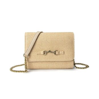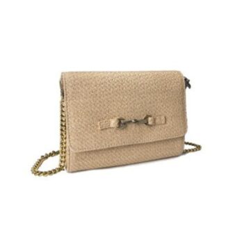 El Bolso Maravilla es el complemento ideal para looks frescos y sofisticados. Fabricado en fibra trenzada de rafia, combina estilo natural y un diseño versátil perfecto para el día y la noche. Su detalle metálico frontal aporta un toque chic, mientras que la cadena dorada permite llevarlo cómodamente al hombro o cruzado.
