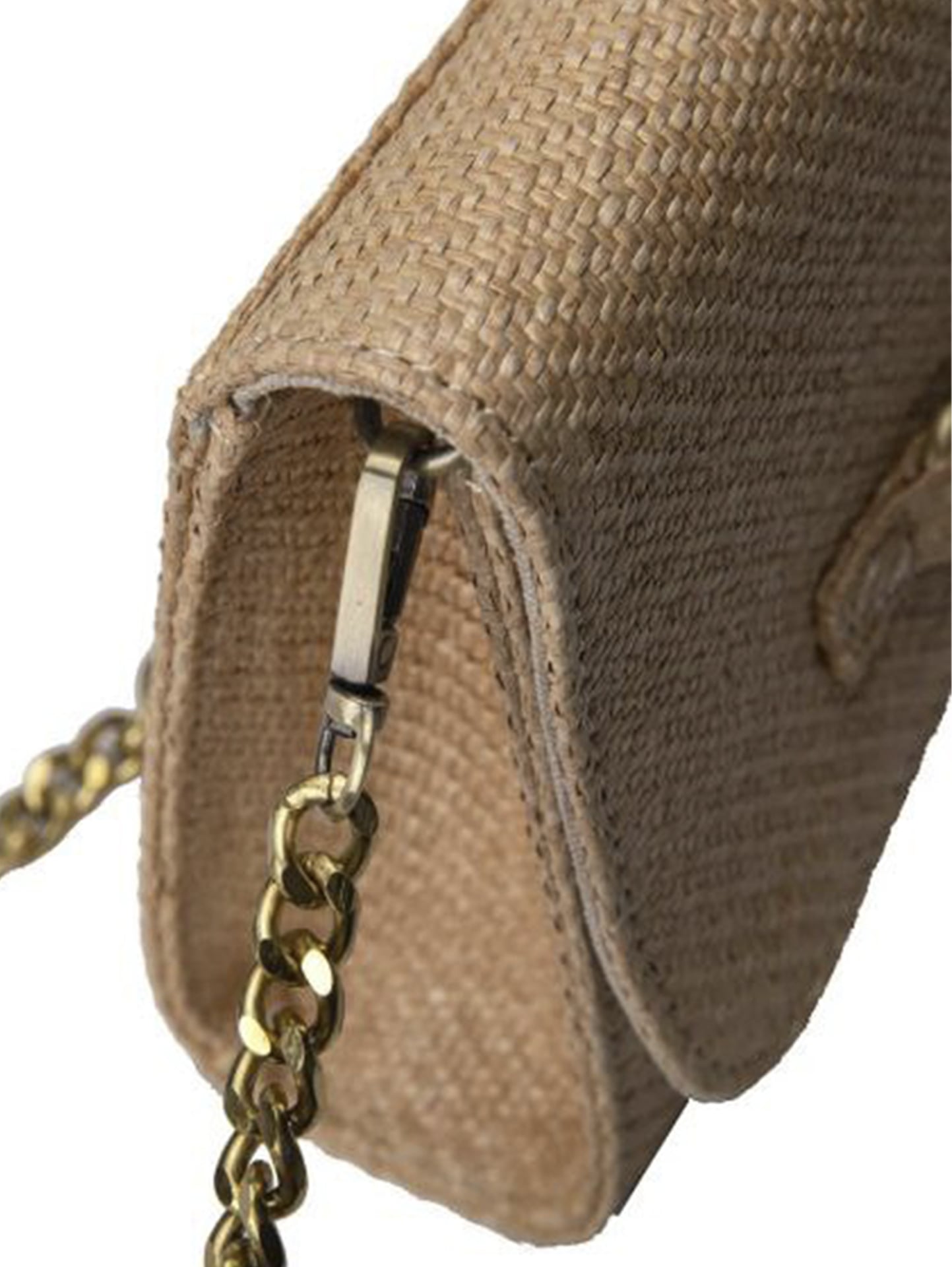 Bolso Bandolera de rafia “Maravilla” – Cadena Dorada y Detalle Étnico