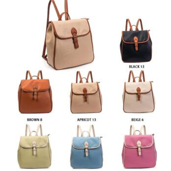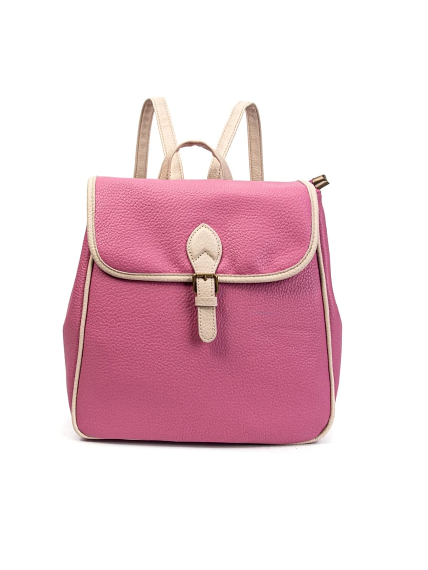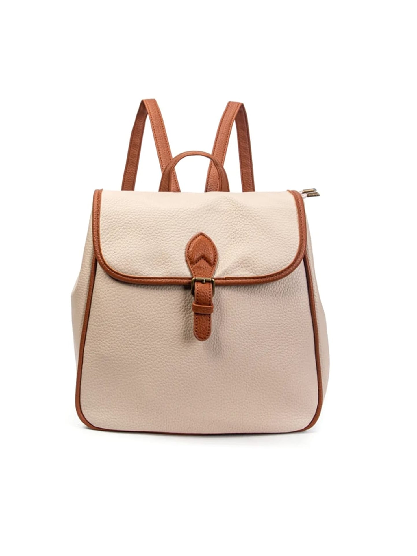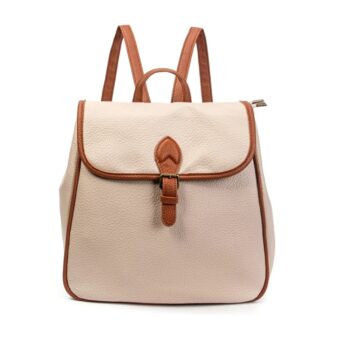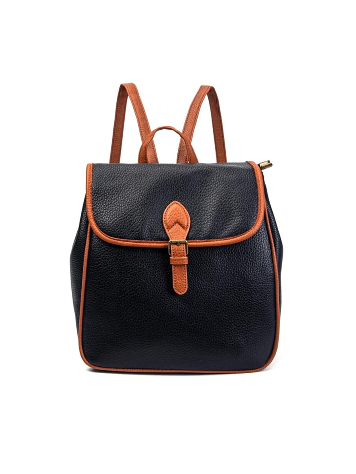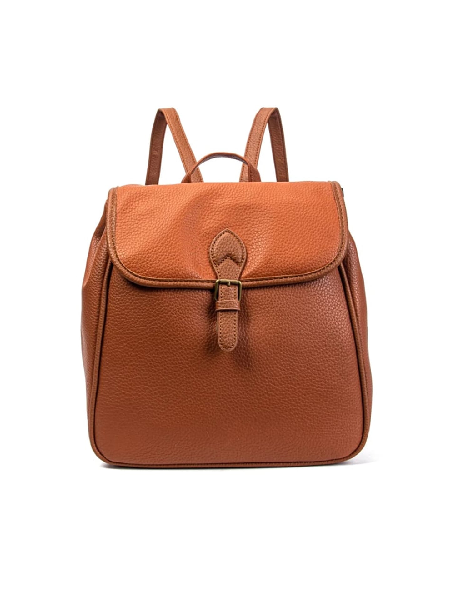 Mochila casual de polipiel con solapa y hebilla decorativa, disponible en varios colores. Ligera, práctica y con gran capacidad para el día a día.